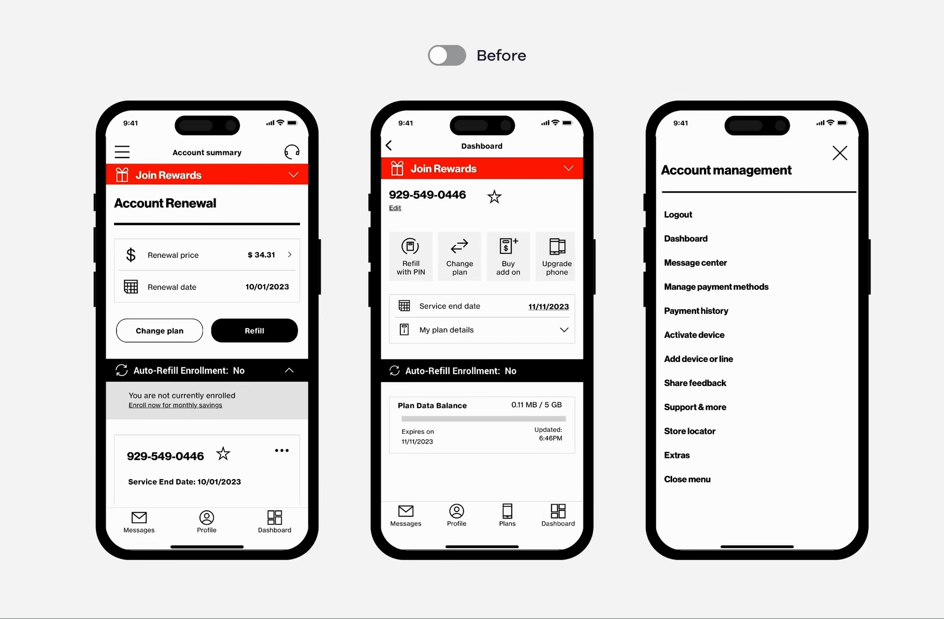 Total Wireless, a telecom brand known for offering affordable wireless plans, found itself struggling to retain customers in an increasingly competitive market dominated by user-friendly and tech-forward competitors. The existing app design failed to meet the expectations of modern users, leading to confusion, frustration, and high churn rates. The outdated interface and lack of clear navigation undermined the brand’s value proposition of simplicity and affordability, creating a disconnect between its promises and user experience.