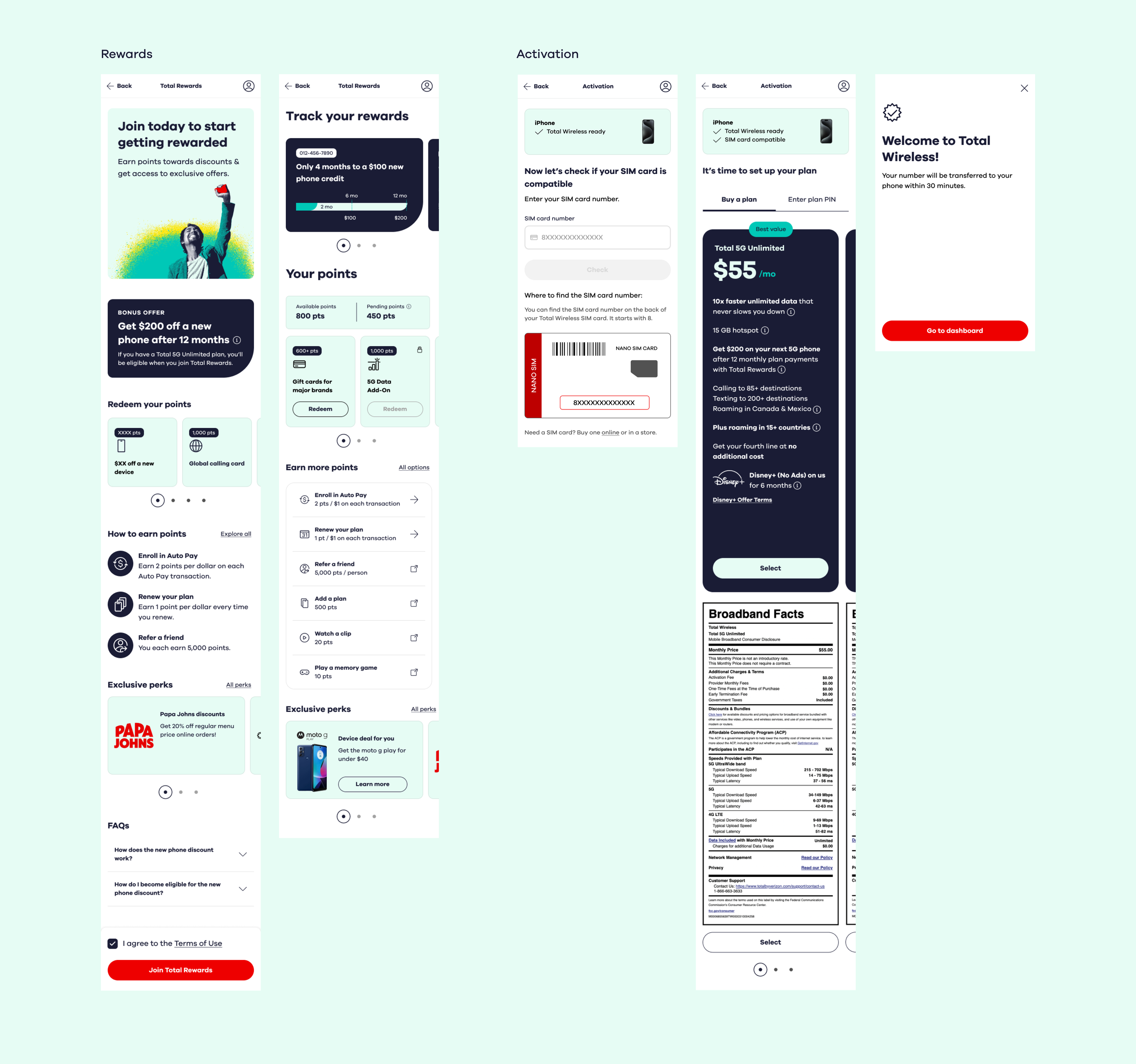 We reimagined the Total Wireless app with a focus on user-centric design. A key part of the redesign was a simple, functional dashboard that allowed users to quickly accomplish tasks like refilling their plan. We revamped critical features, including a more intuitive payment flow and the ability to easily change plans directly in the app. Additionally, we built a comprehensive design library for consistency and scalability while incorporating accessibility annotations to meet ADA standards and ensure usability for all.