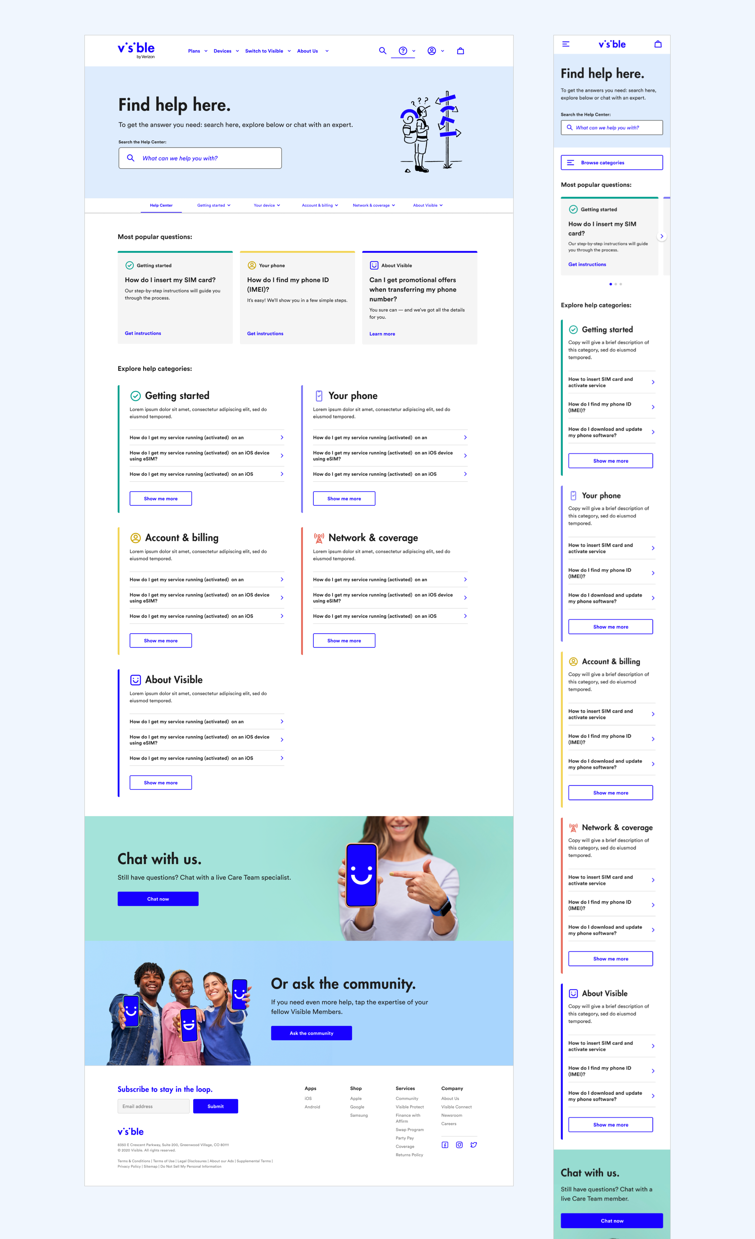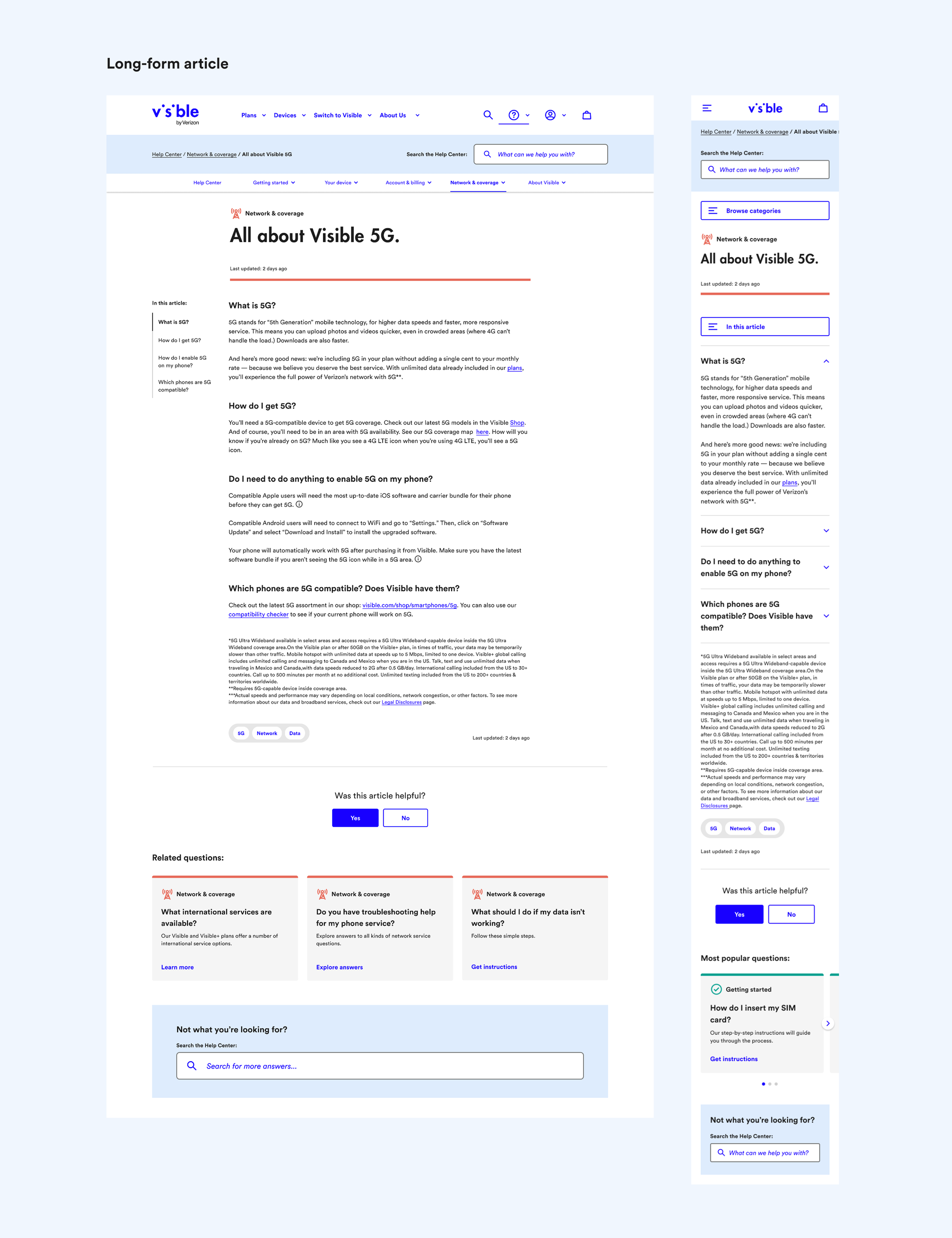 Together with a UX architect, I designed a new platform that would allow users to simply search for articles and browse categories to find the answers they need most, while surfacing popular and relevant content onto the landing page.