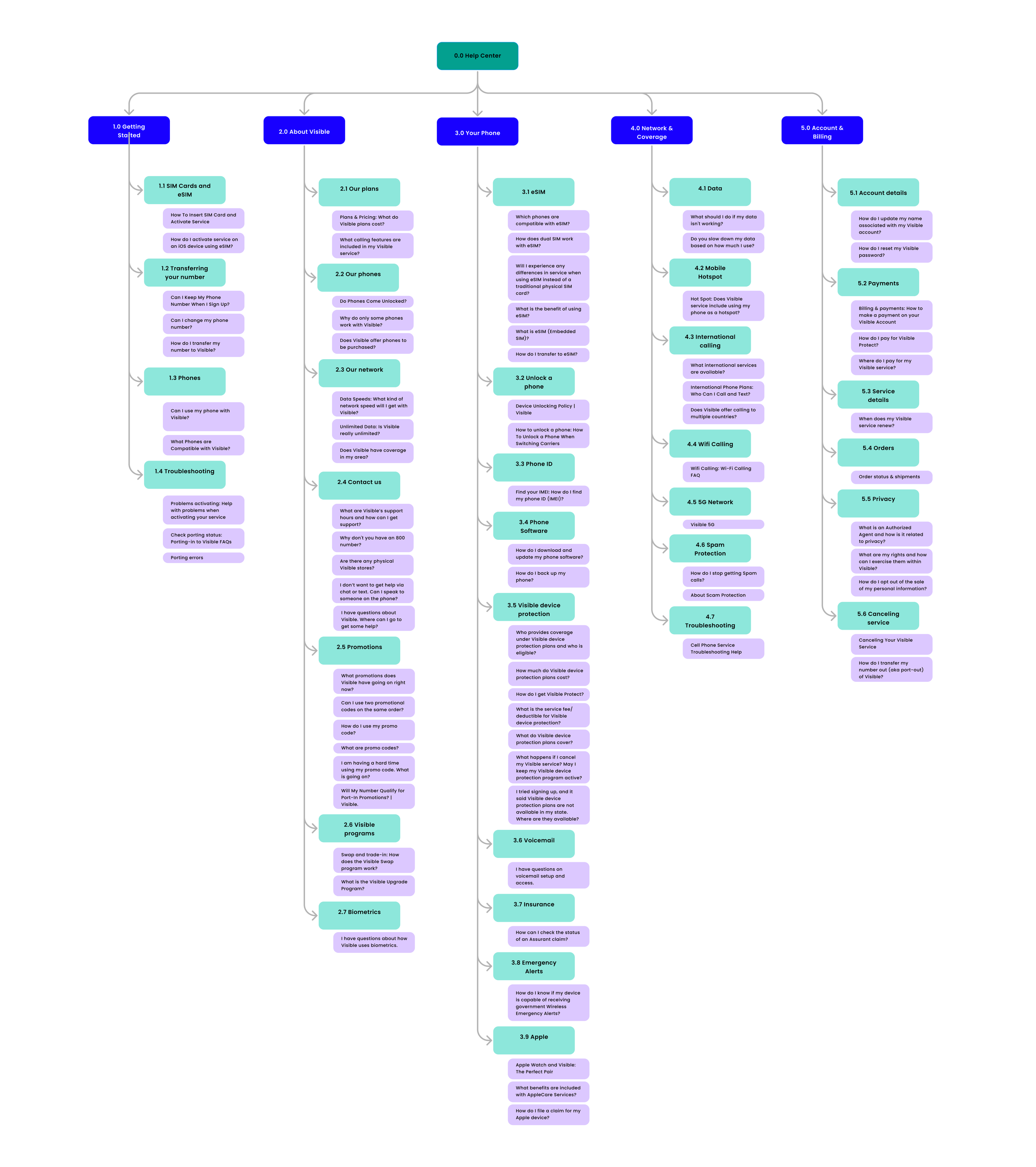 The Visible Help Center experience was difficult to navigate and visually misaligned with the rest of the Visible platform, and needed a rethink. There was also a desire from the business to reduce calls to their support line, and allow customers to diagnose and solve problems themselves.